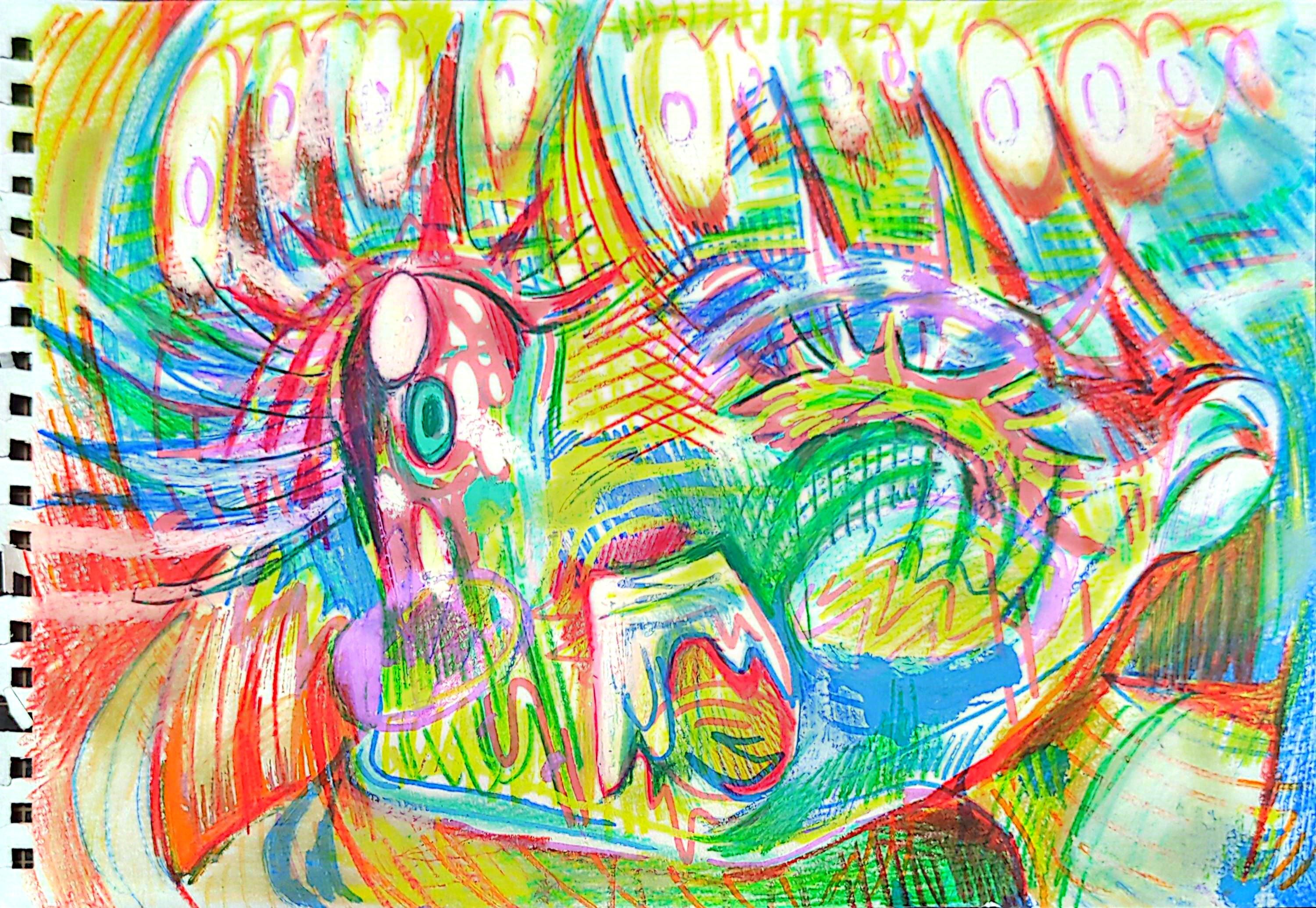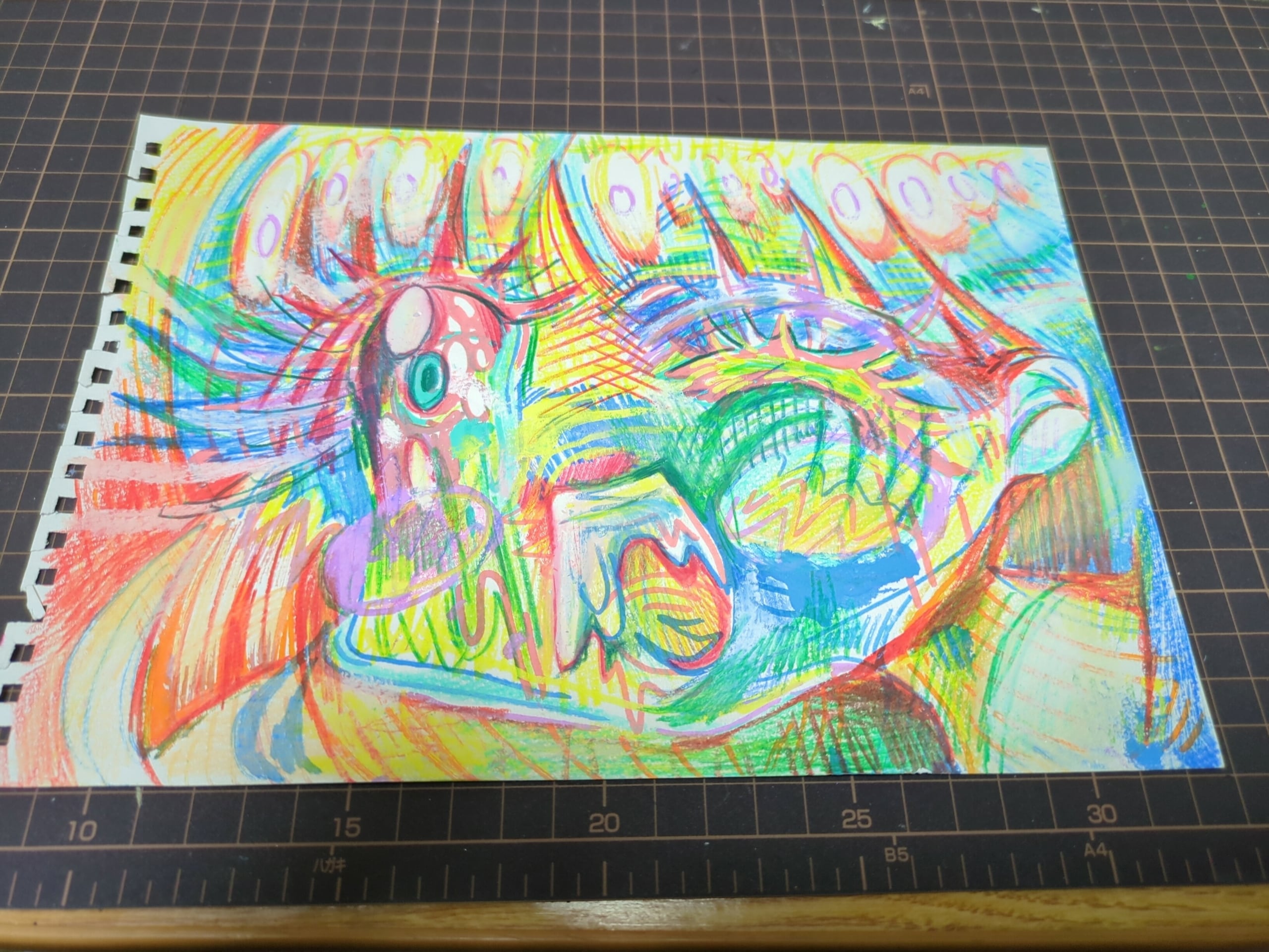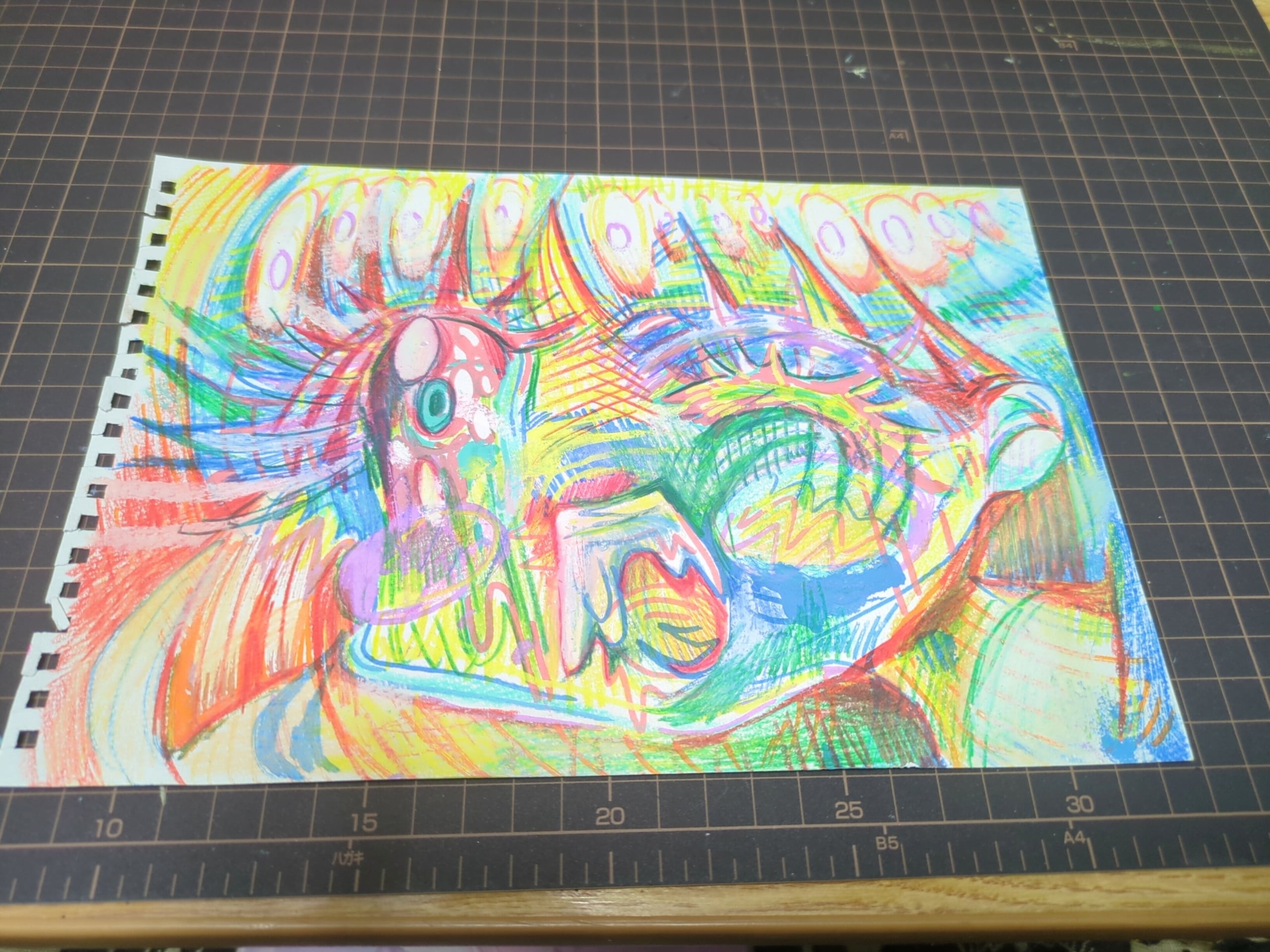 スケッチブック画用紙に色鉛筆とポスカ(ペン)