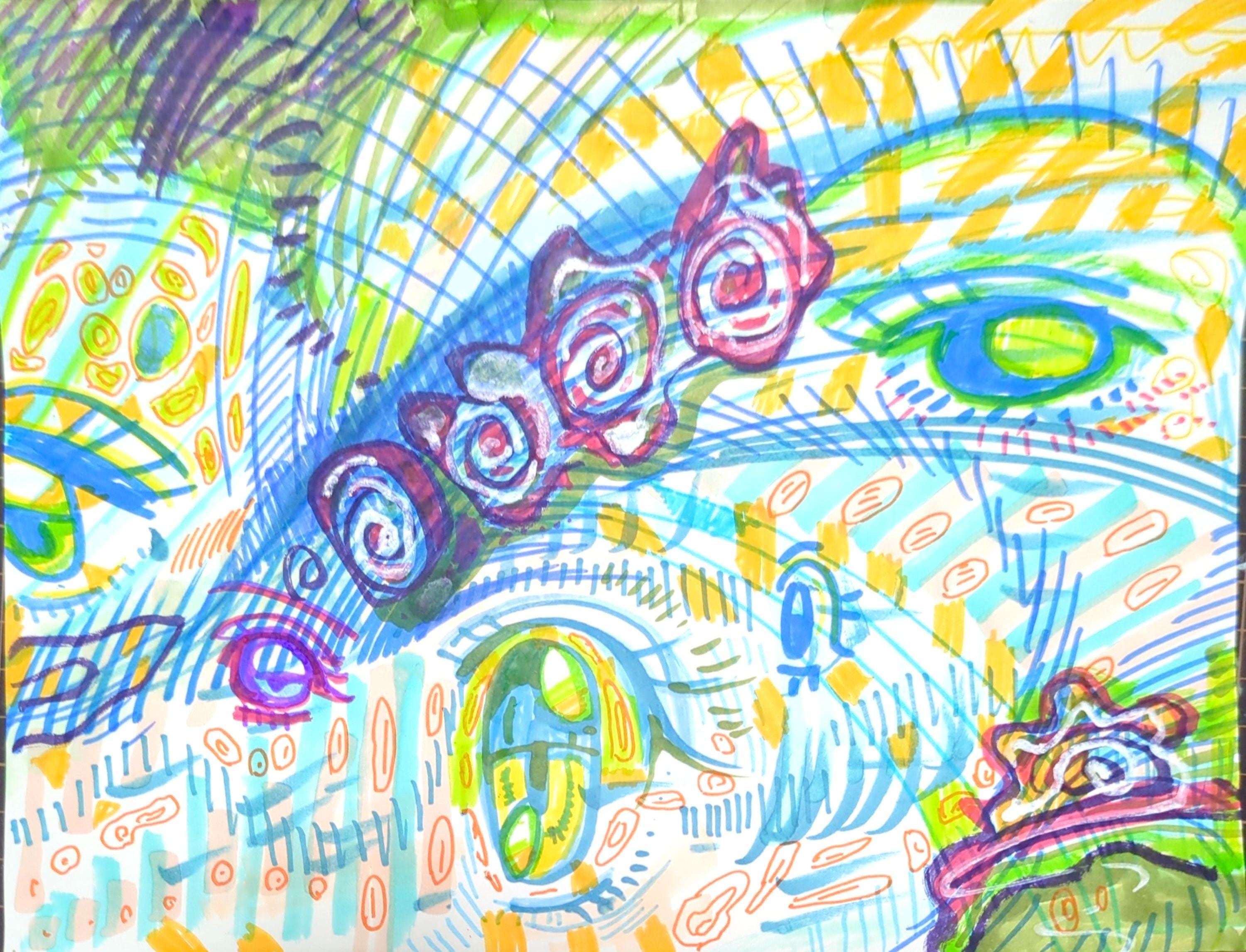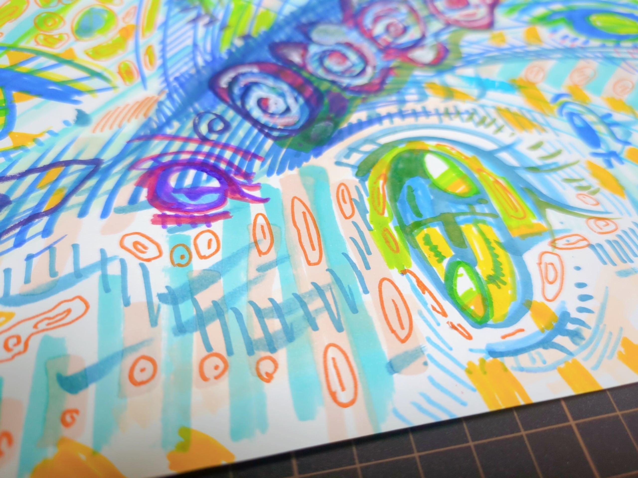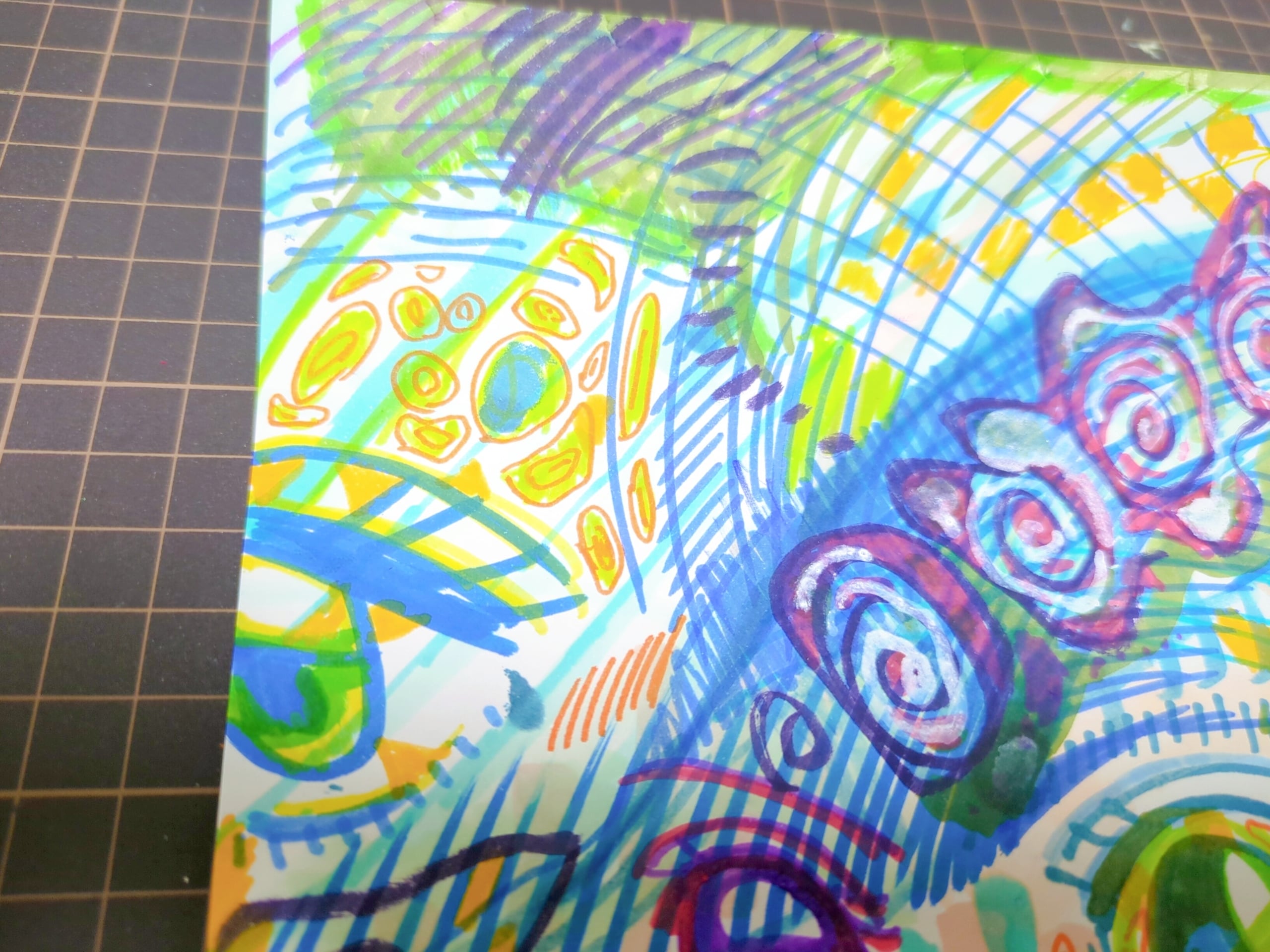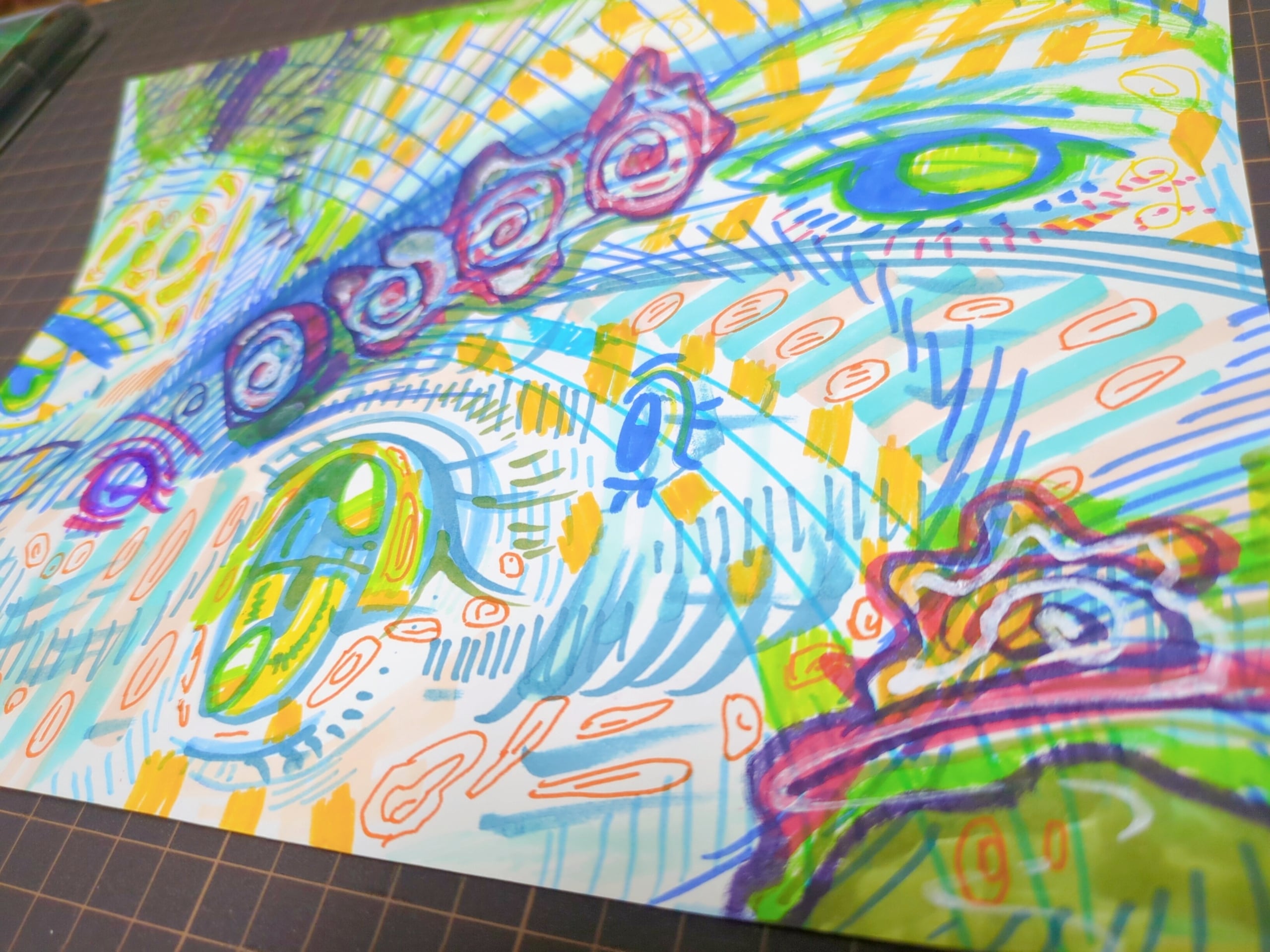 画材は、画用紙に油性ペン、アルコールマーカー、サインペン、修正液等です。